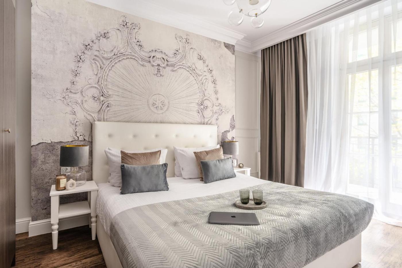 Apartament "Saint- Germain" z dużym balkonem i kominkiem. The fireplace is the standout feature of this apartment. This spacious apartment features 1 living room, 3 separate bedrooms and 1 bathroom with a bath and free toiletries. The well-equipped kitchen has a stovetop, a refrigerator, a dishwasher and kitchenware. The air-conditioned apartment features a flat-screen TV with cable channels, a washing machine, a private entrance, a tea and coffee maker as well as city views. The unit has 4 beds. Apartament - 11 osobowy. Powierzchnia pokoju ok.: 90 mkw.